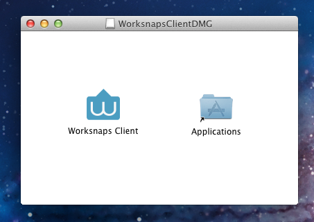 - You should see an installation window like this one . Just drag the Worksnaps Client icon to the Application folder.